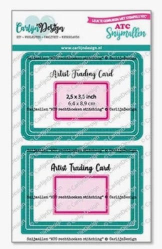 Set of cutting dies ATC Rectangles stitching in the perfect size rectangles for making ATCs! With 3 sizes with stitch border for both normal rectangles and rounded rectangles. Also fit perfectly with the other 'Cutting dies ATC rectangles'.