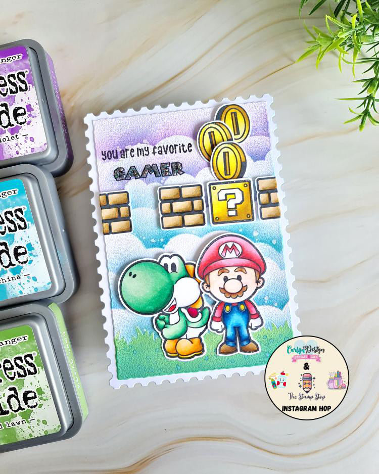Works well with the super world,bad bros, dungeon squad, italian flyer, damsels and race track stamp sets and the Gameland die and switch die. The game over paperpad as well