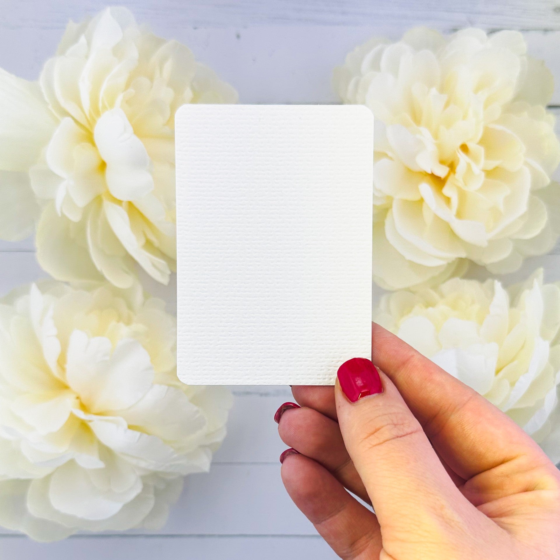 10 stuks kant en klare ATC kaarten. Beschikbaar in 11 verschillende kleuren. 10 van elke kleur. Gladde ondergrond. Niet geschikt voor alcohol markers. De witte heeft ook een ribbelkant.