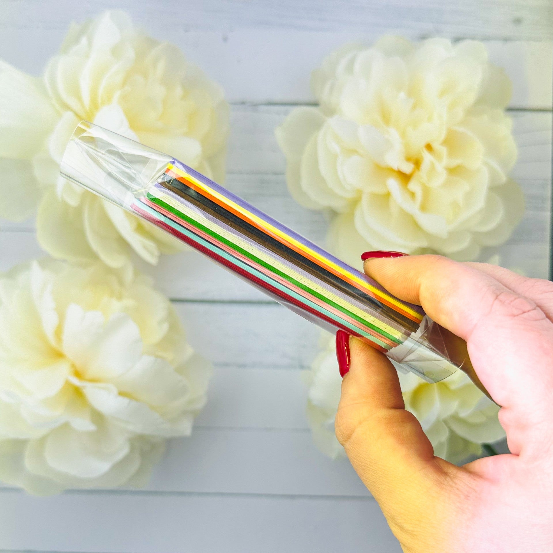 55 stuks kant en klare ATC kaarten. 11 verschillende kleuren. 5 van elke kleur. Gladde ondergrond. Niet geschikt voor alcohol markers.