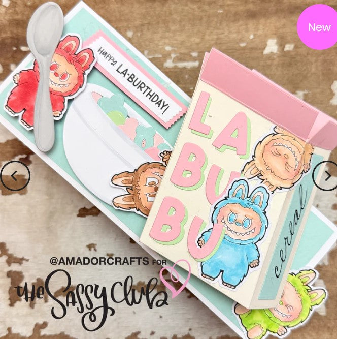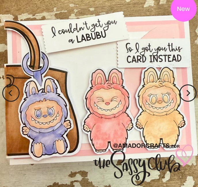 this stamp set is limited edition in nature and will only be around for limited time. 6x8 Stamp Set Words on Set: Happy La-Burthday, Our Little Monster is turning, I couldn't get you a La Bububu so I got you this card instead
