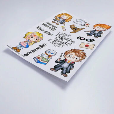 5x7 Stamp Set Words on this set:  happy birthday to my favorite muggle I think you're wand-erful  your just my sort  happee birthdae