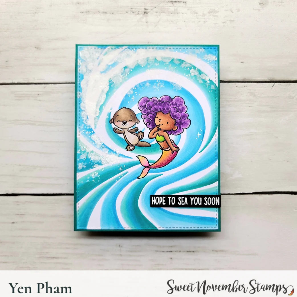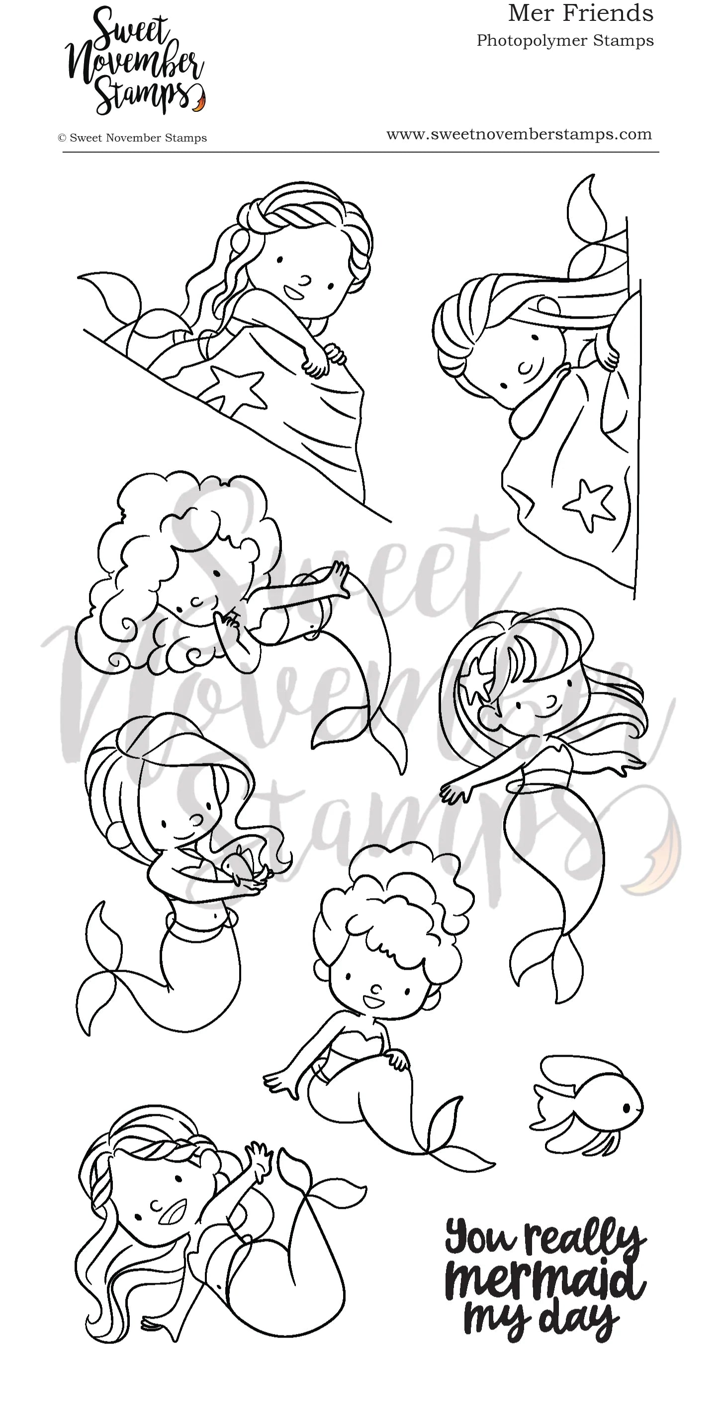This 4x8 set is packed to the gills with cute mermaids, including seven fin-tastic ones in different poses to add a splash of fun to your cards. Also includes a fishy friend and a sentiment: