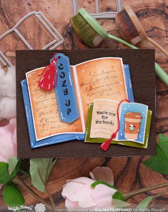Cozy up your Open Book Trio die-cuts with fall-themed elements using this stencil duo. Think coffee, colorful leaves, trees, and a sweet little hedgehog enjoying a warm drink and a bite of pie.