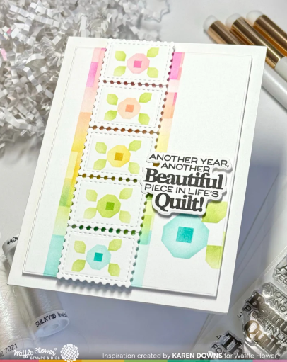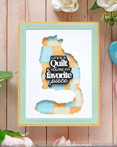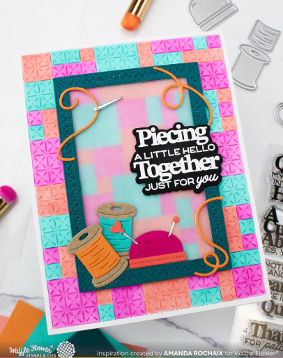 Designed to coordinate with the Tiny Square Texture Die for a quilt-inspired background, the Patchwork Stencil includes three layers. Use it with the texture die or on its own for a clean, modern look.