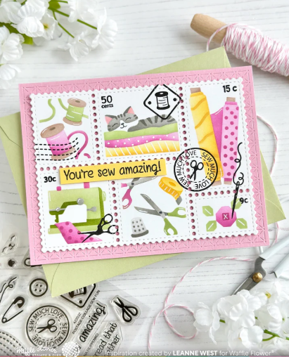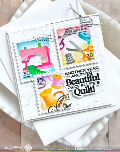 The cat’s face is stamped using the Postage Collage Sew Fun Stamp Set—a tiny detail that brings the scene to life!