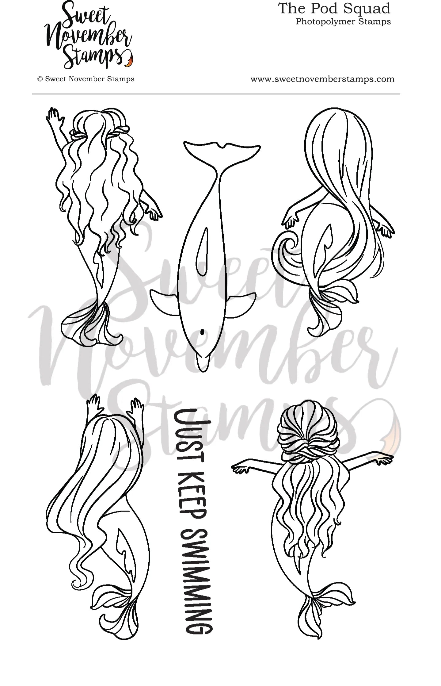 View the world from above with this whimsical 4x6 set. Featuring a pod of four graceful mermaids and a dolphin pal, let your imagination swim free! Includes one sentiment: