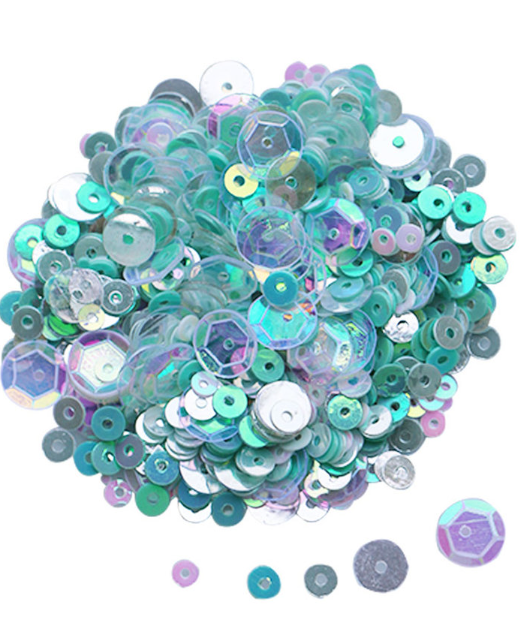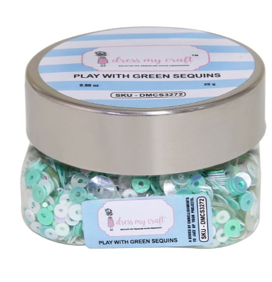 Dress My Craft Sequins Mix. 25gm. A series of very high-quality sequins to jazz up and fill your shaker cards, tags, etc. These are great to be used as a mixed media background. For a more shimmery and sparkling look for your projects, these sequins are a "MUST HAVE". These Sequins come in a beautiful, reusable plastic jar.