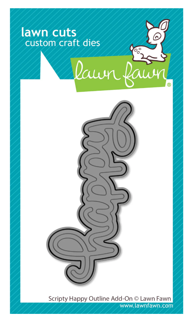 Add an outline border effect to your Scripty Happy Lawn Cut! Layer Scripty Happy on top of the outline using the embossed “happy” as a guide for easy placement. Use your favorite color of cardstock (shiny is super fun) or patterned paper for a unique look each time.