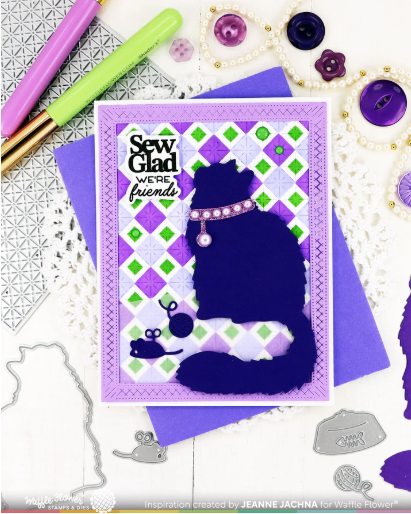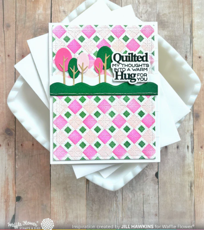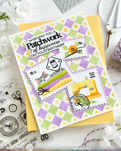The Tiny Square Texture Die and its five coordinating stencil sets are backgrounds inspired by classic quilting patterns. Like many of our newer texture dies, it doesn’t cut the outer edges. We recommend centering the die over a piece of cardstock trimmed to 4.25” x 5.5” (A2 size) to create a full panel—or, offsetting the die for more layout options. You can use the panel on its own or with any of the coordinating stencils for a quick and colorful background.