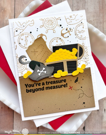 Designed to coordinate with the Inquisitive Pirate Add-On Die, this stamp set includes fun pirate-themed puns along with extra images like a treasure map, anchor, and compasses—perfect for building backgrounds and adding playful details to your scenes. Sure to bring a smile to your recipient’s face!